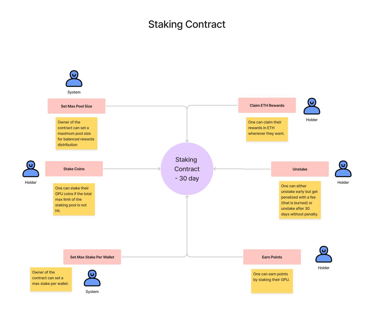 Participants are rewarded with ETH, proportional to the amount of $GPU tokens staked and the duration for which they are staked.